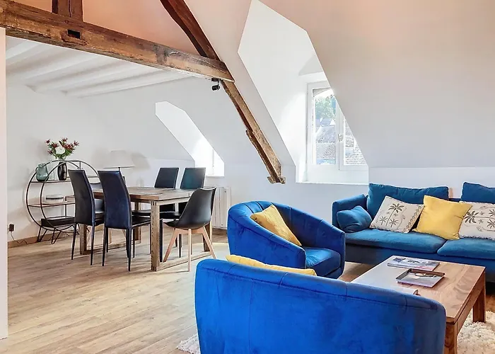 이 80m² 아파트는 도빌르-노르망디 공항에서 5km 떨어져 있습니다.